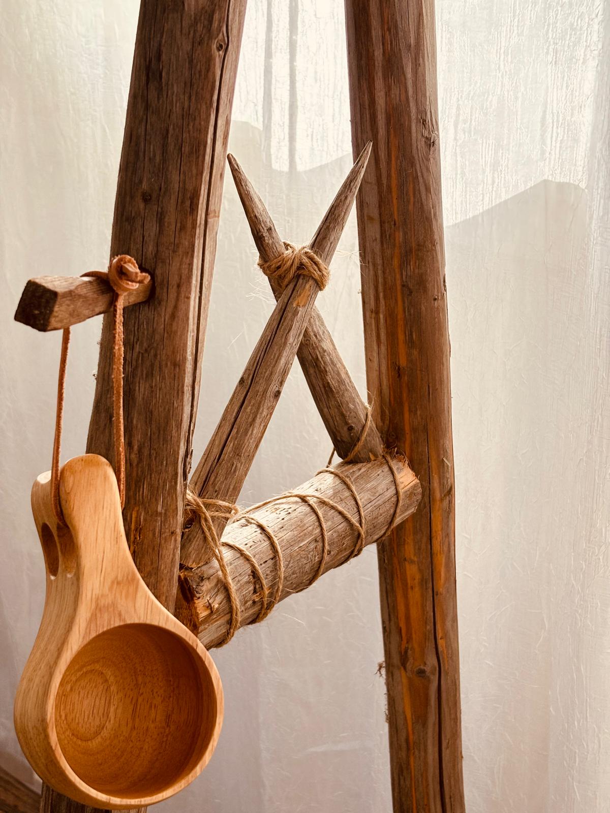 Jokainen vaaterekki valmistetaan käsityönä vanhoista heinäseipäistä, jotka on huolellisesti valittu, ja työstetty uuteen käyttöön. Käytetty puu ei ole uutta tai teollisesti tuotettua – se on vuosikymmeniä elänyttä materiaalia, jonka ainutlaatuista ilmettä ei voi jäljitellä.